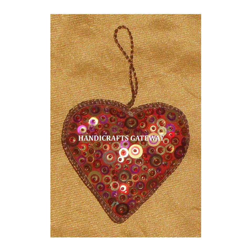 Ornement de Noël suspendu en forme de cœur, magnifique et attrayant, broderie zari, tissu, travail de perlage, utilisé pour la décoration de la maison