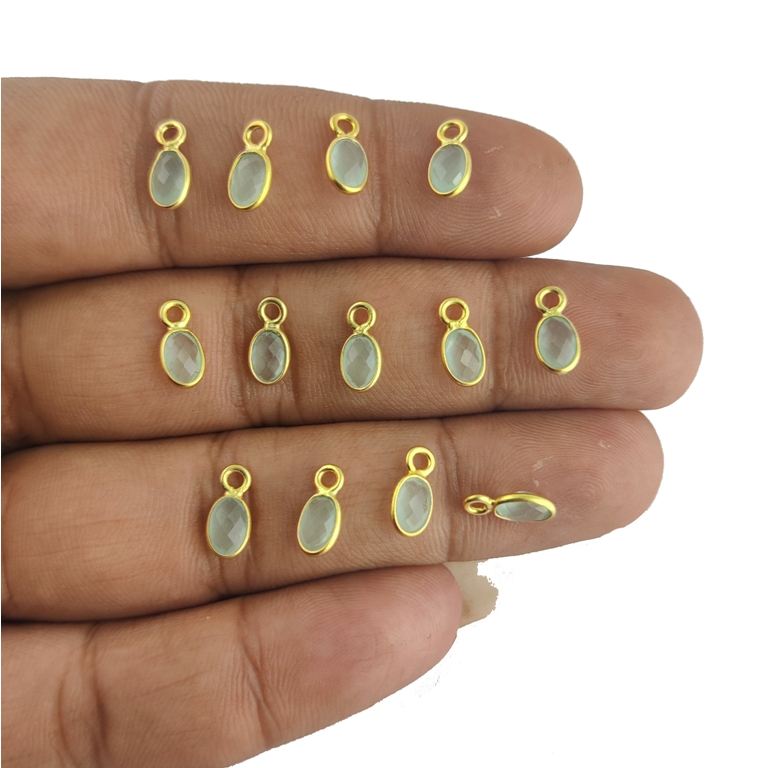 Pendentif breloques ovales en or, petite pierre précieuse de calcédoine, 4x6mm, 30 pièces