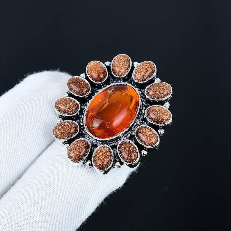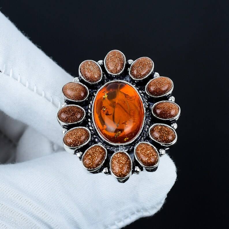Nom du produit:Bague en ambre de la Baltique et pierre de soleil