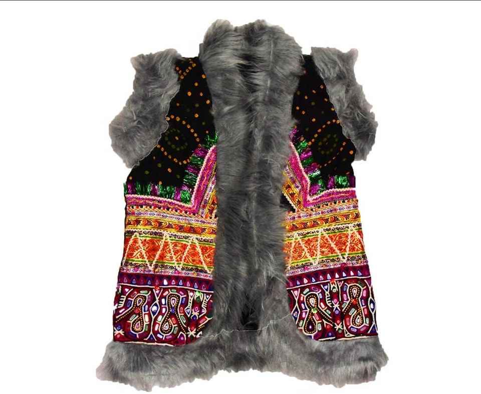 Belle veste de soirée courte style bohémien Banjara avec fausse fourrure
