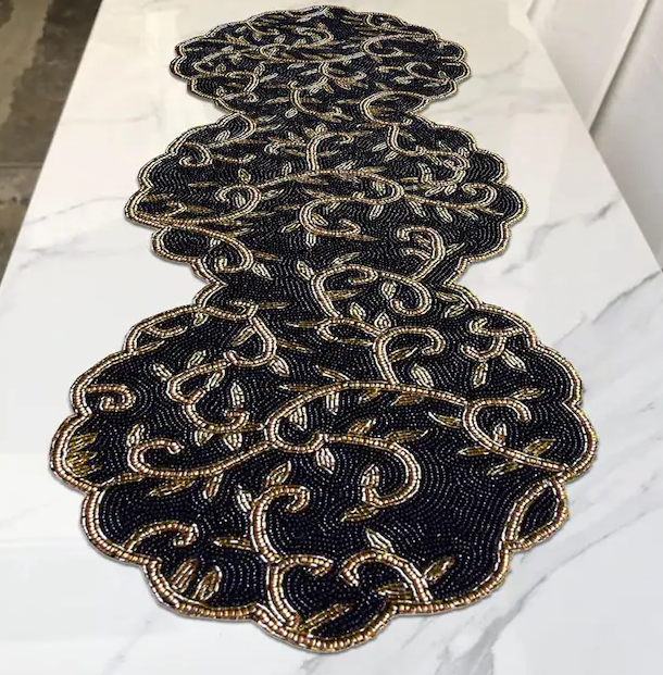 Beau chemin de table perlé taille personnalisée chemin de table décoratif pour salle à manger mariage et événement en vrac fournisseur et fabricant Falah Int