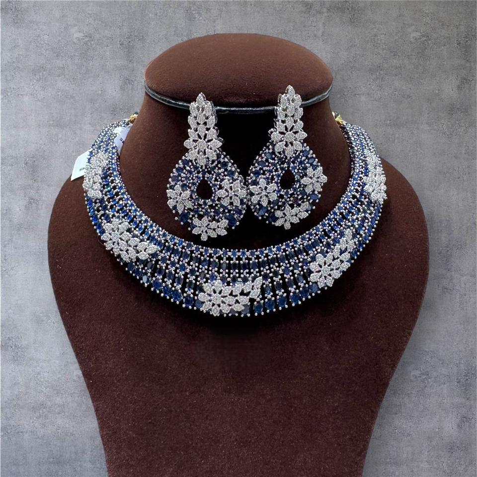 Magnifique collier en zircon plaqué argent de haute qualité avec boucles d'oreilles pour mariage Collection pour femmes