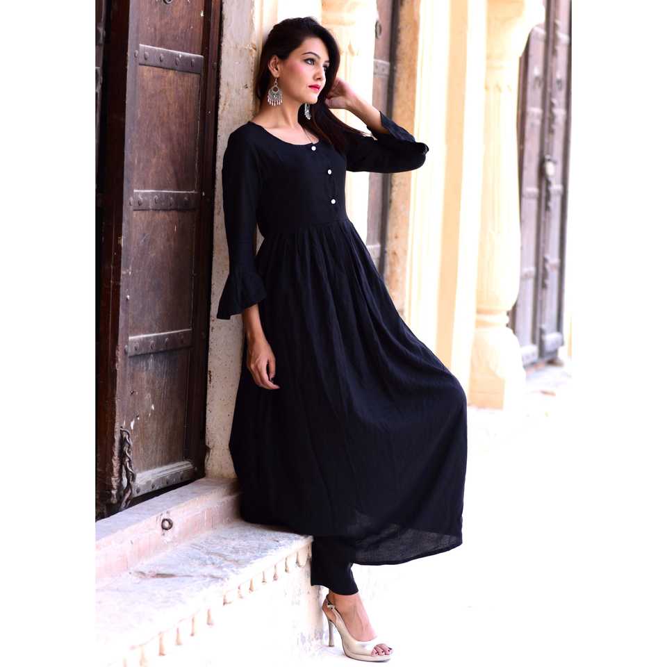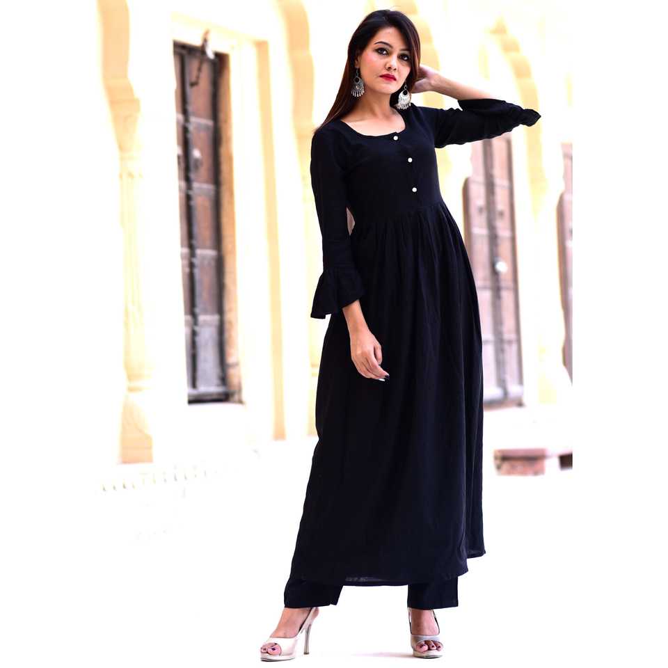 Kurta/Kurti décontracté en rayonne noire pour femmes indiennes et pakistanaises, idéal pour les fêtes et les mariages