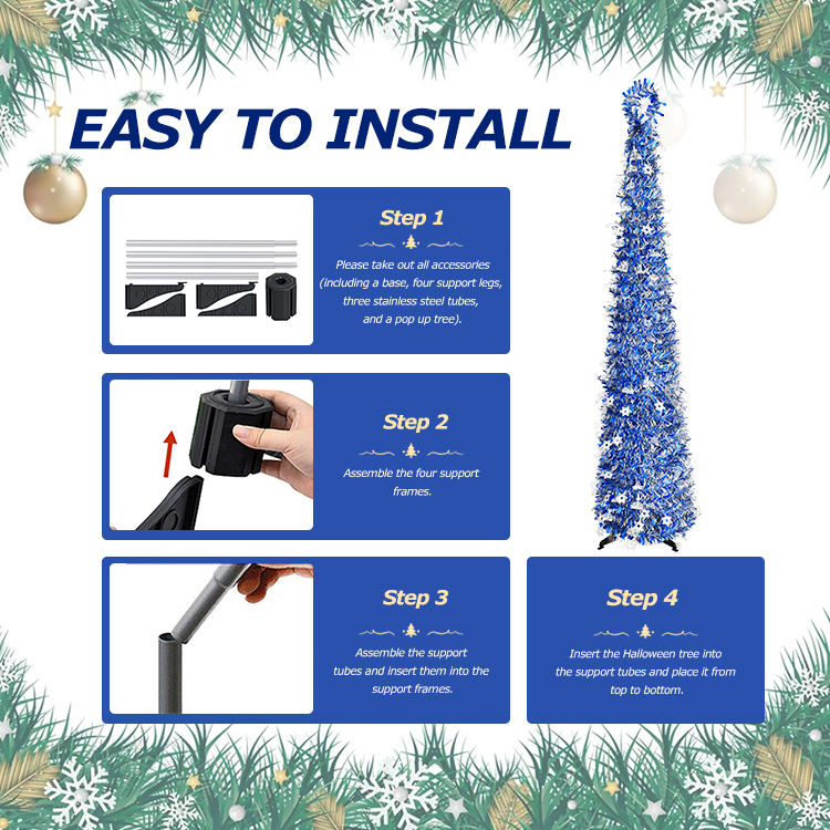 Magnifique sapin de Noël bleu avec des accents de flocons de neige et une installation simple, parfait pour les maisons et les bureaux