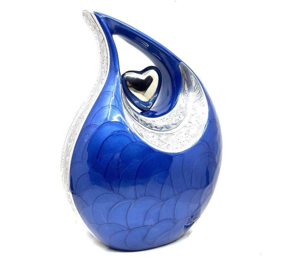 Magnifiques urnes funéraires bleues gravées en forme de goutte d'eau avec cœur pour adultes, pour cendres funéraires, 200 pouces cubes, écologiques et durables