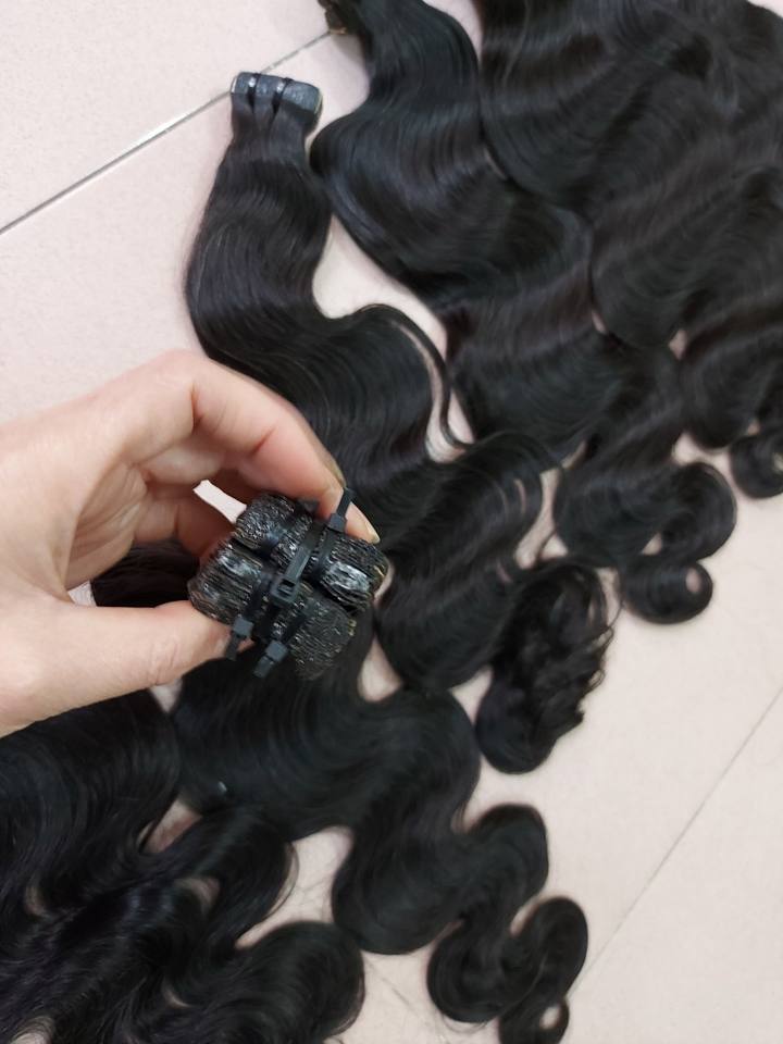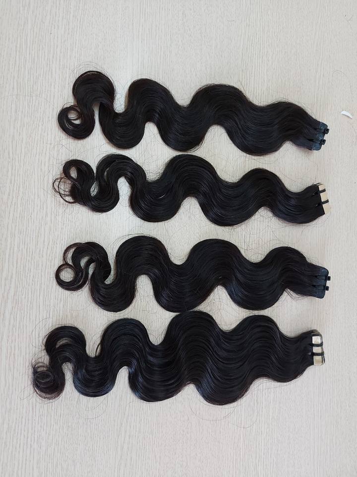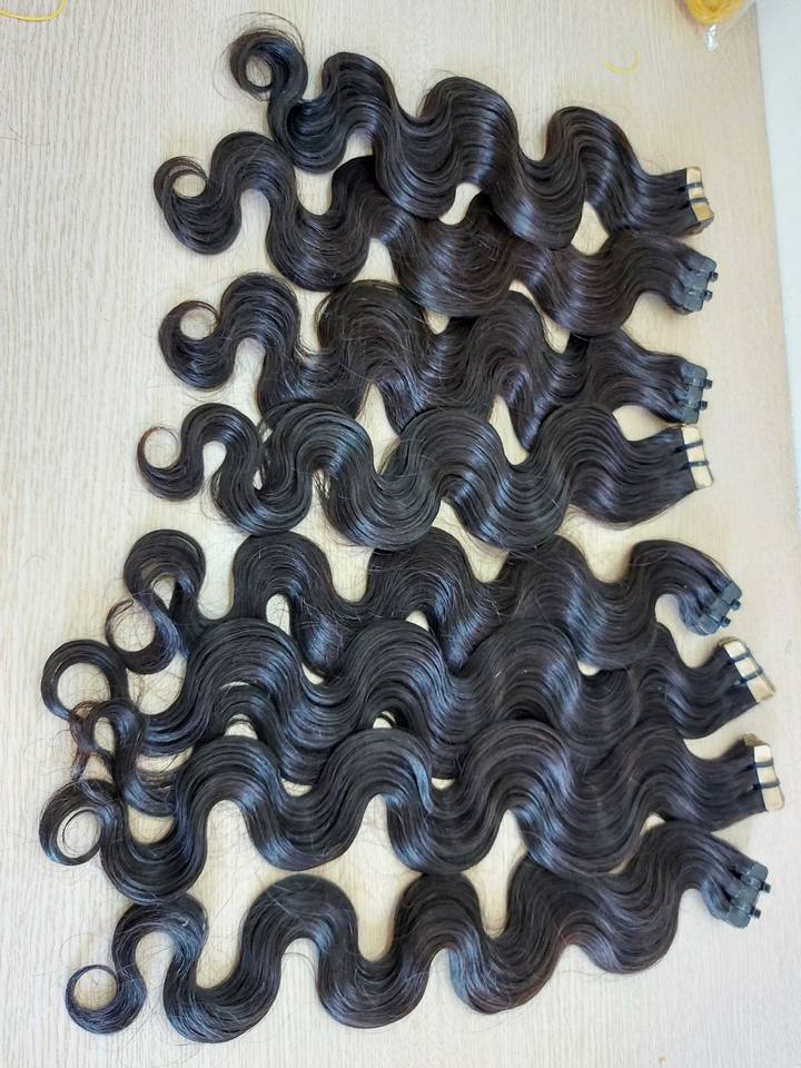 Extensions de cheveux vierges vietnamiens de vague de corps noir naturel de haute qualité ruban non transformé avec une belle cuticule