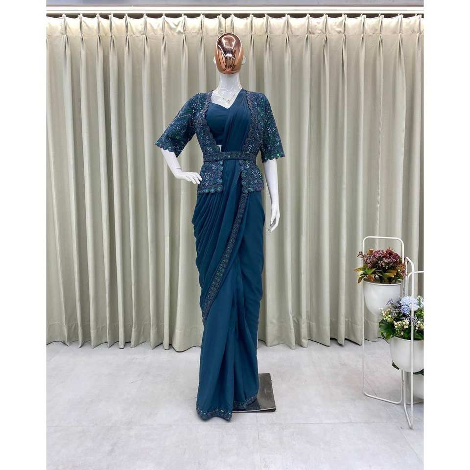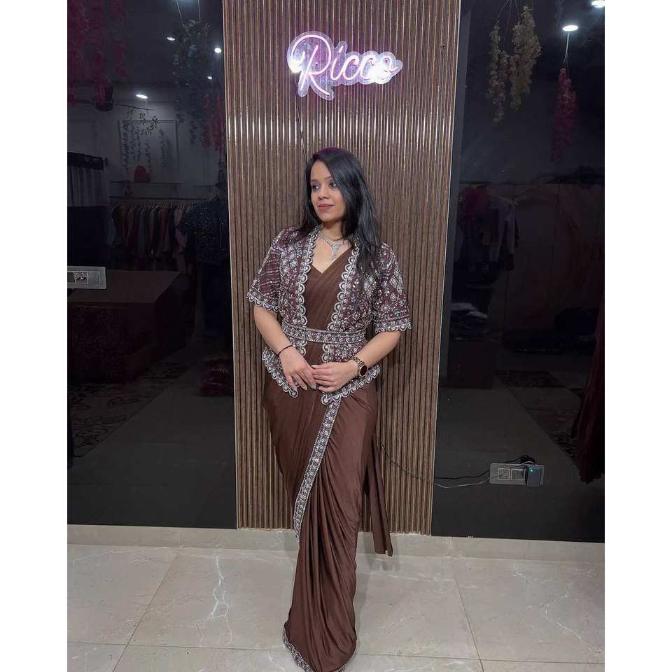 Magnifique sari de fête en koti brun orné, taille unique, pour robes de bal par Bhanderi -BE