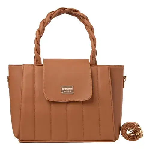 Sac à main pour femme Fana Kaira, couleur camel, poignée tressée, sac à main décontracté de luxe avec doublure en cuir, matériau métallique
