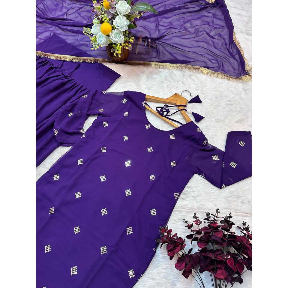 Magnifique ensemble de fête en mousseline de soie, taille XS, haut à manches courtes, bas et dupatta