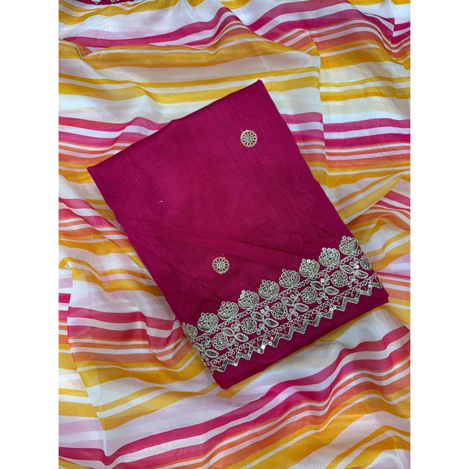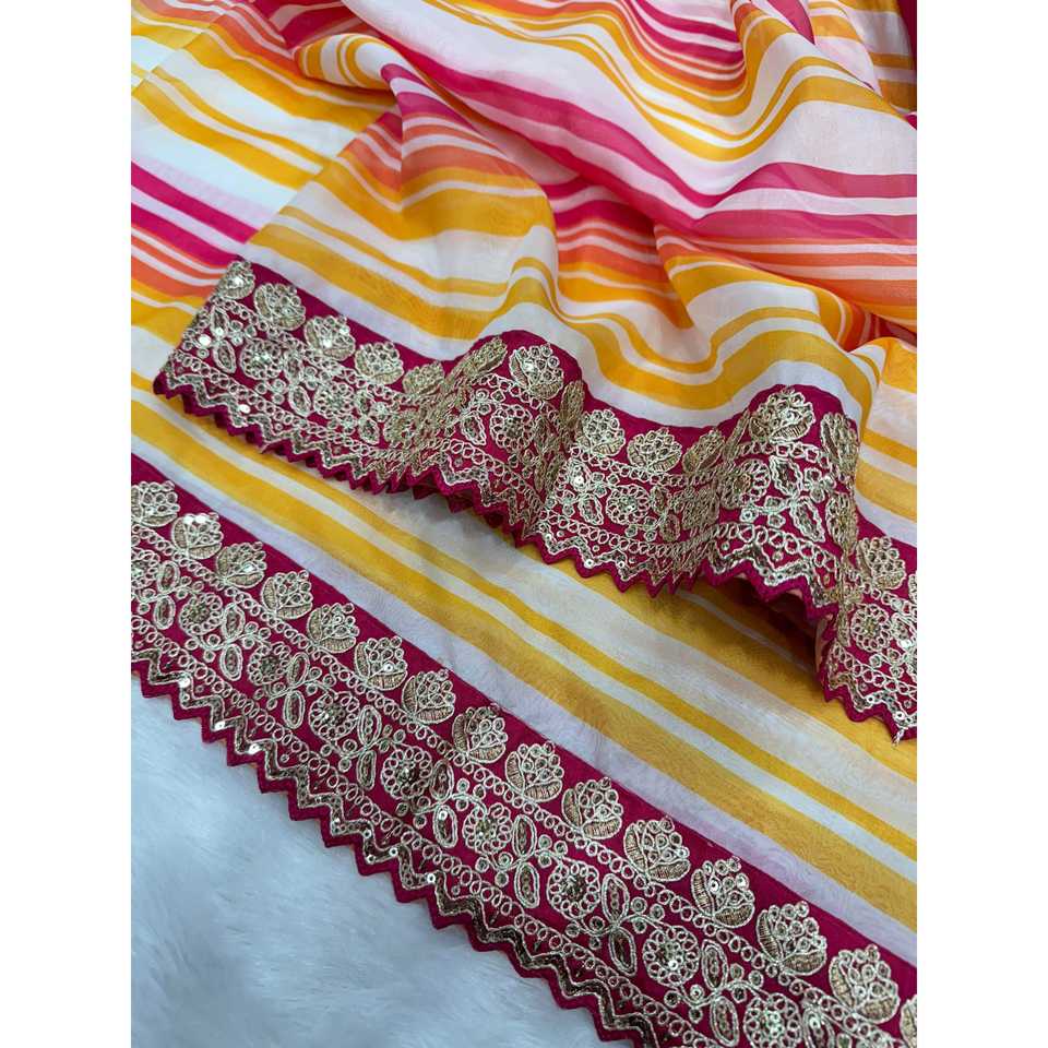 Magnifique robe de soirée en mousseline rose avec broderies et bordure en dentelle, idéale pour les fêtes