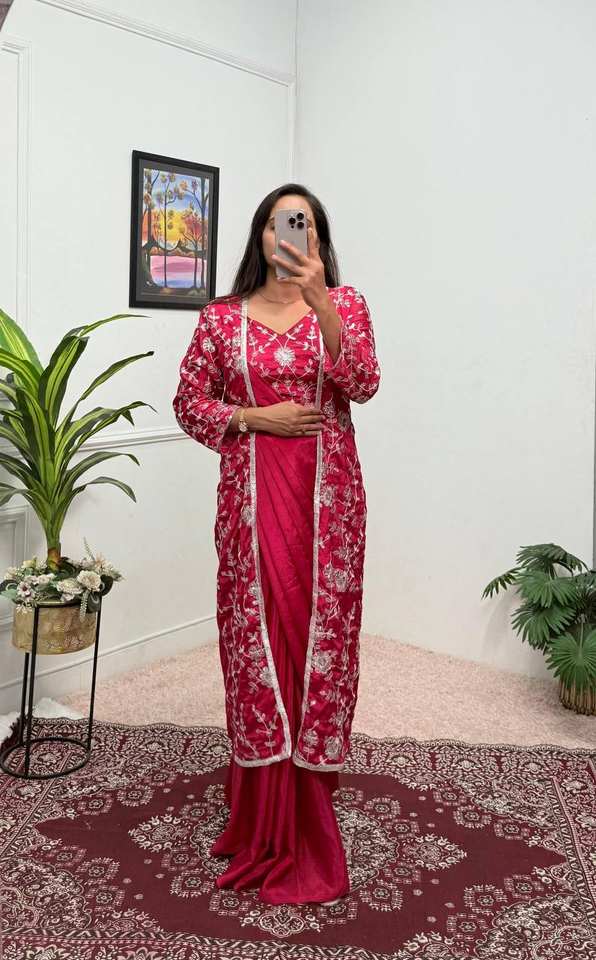 Belle Chinnon Silk Saree Collection Travail de broderie lourde Prêt à porter pour les femmes Festival Party Wear