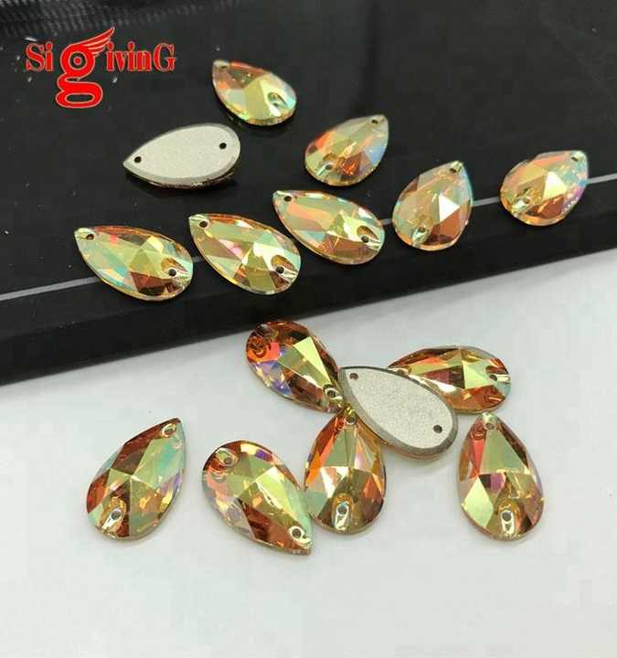 Belle couleur coudre sur cristal strass couleur soleil 17*28mm 3230 forme de goutte pour la fabrication de robes