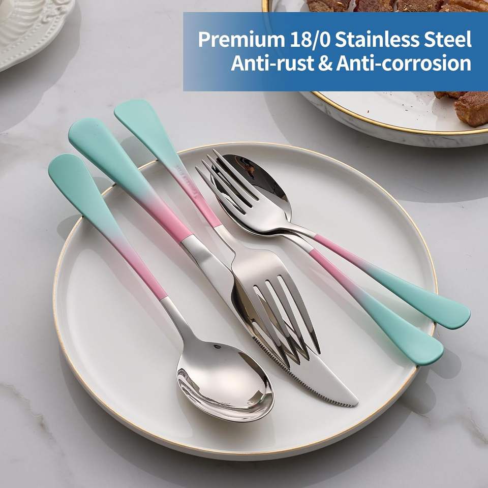 Ensemble de couverts en acier inoxydable de belle couleur Vaisselle de restaurant avec cuillère en argent Couteau à fourchette pour les fêtes et les familles