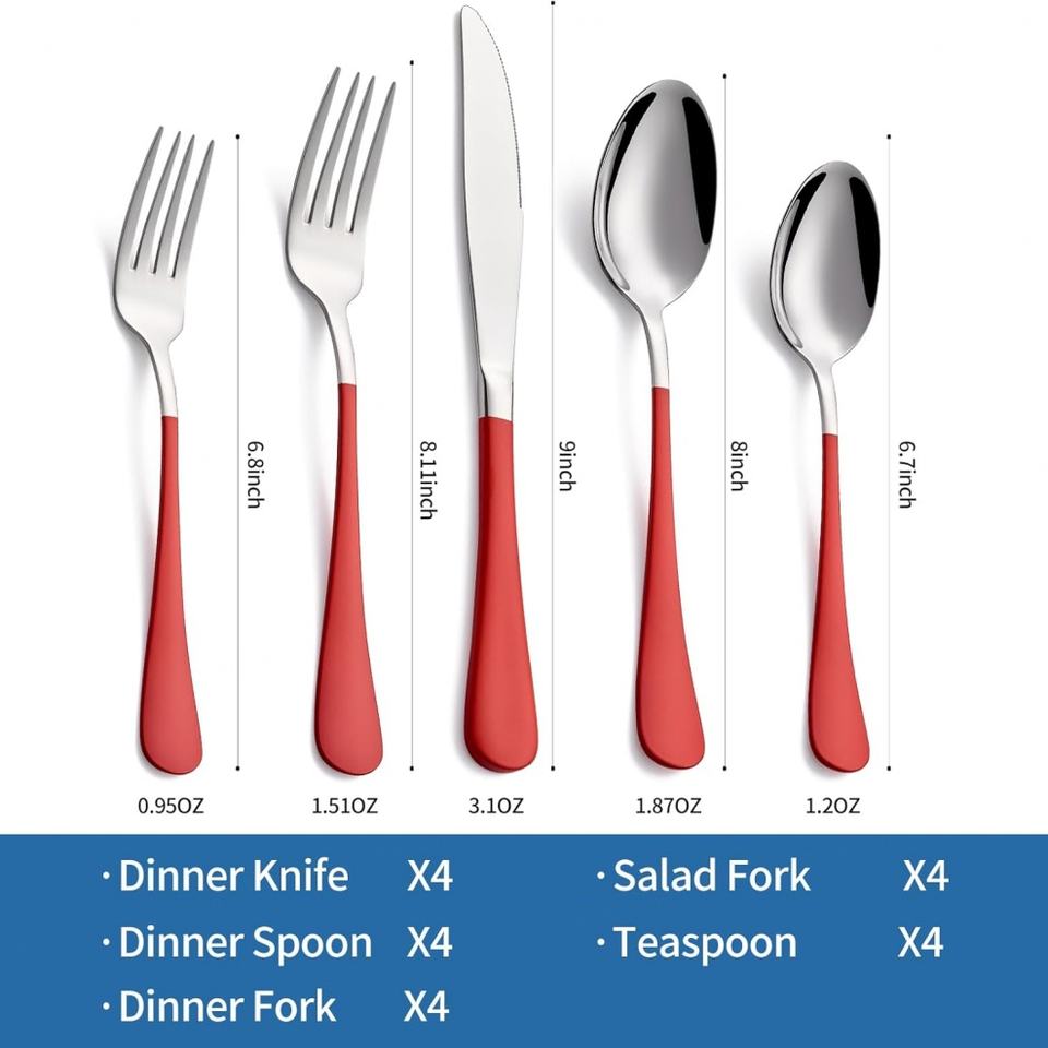 Ensemble de couverts en acier inoxydable de belle couleur, vaisselle de restaurant, comprenant une cuillère, une fourchette et un couteau en argent, adapté aux fêtes et à la famille