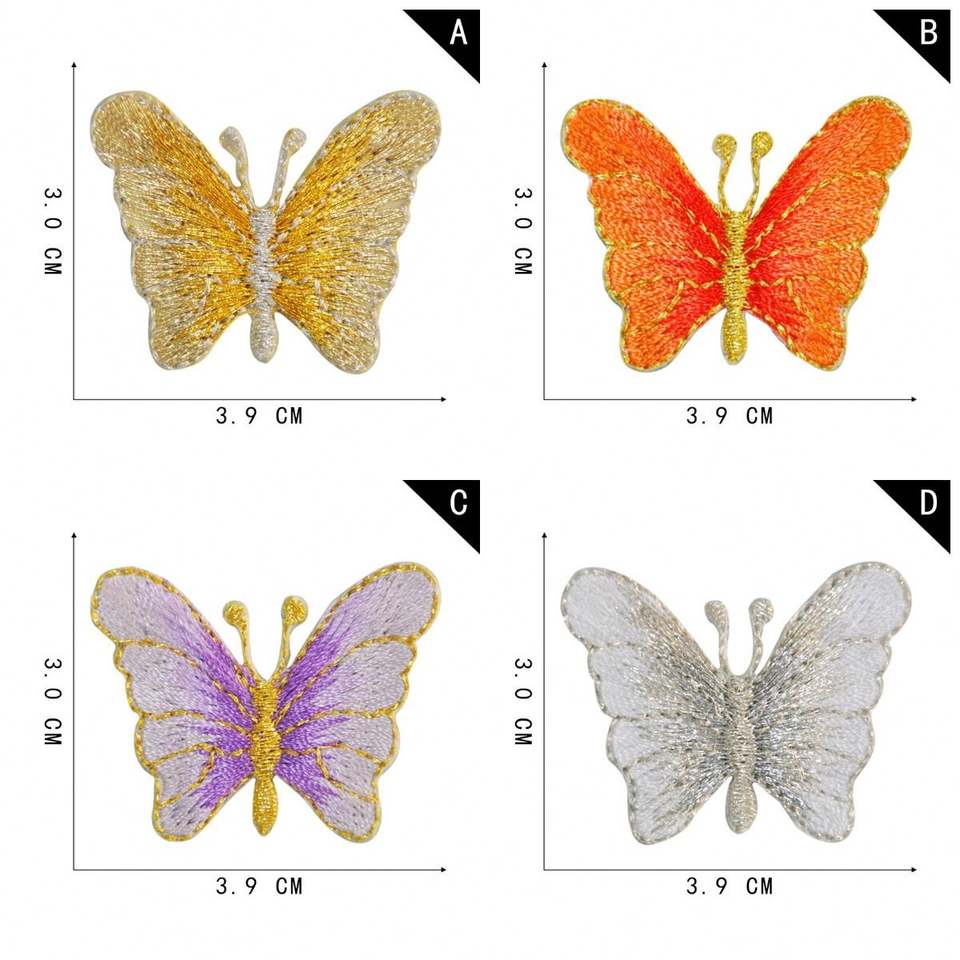 Magnifiques patchs brodés papillon colorés avec bordure dorée scintillante pour vêtements d'enfants