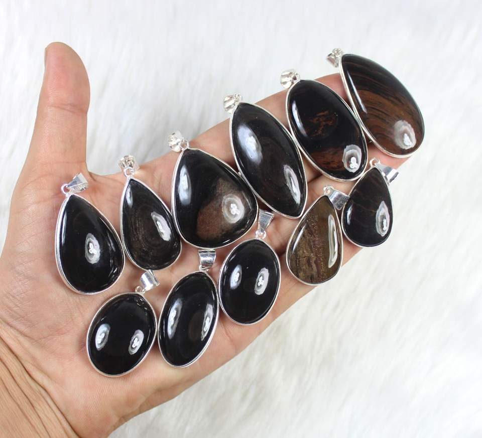 Product Name:Copper obsidian silver plated pendants