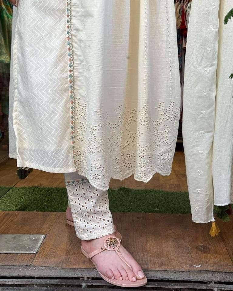 Magnifique Dobby en coton avec broderie de fil Travail Kurti Pant et Dupatta Fabricant en gros de Surat