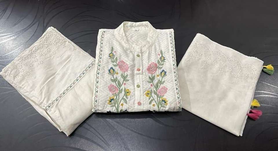 Beautiful Cotton Dobby With Embroidery Work Kurti Pant And Dupatta