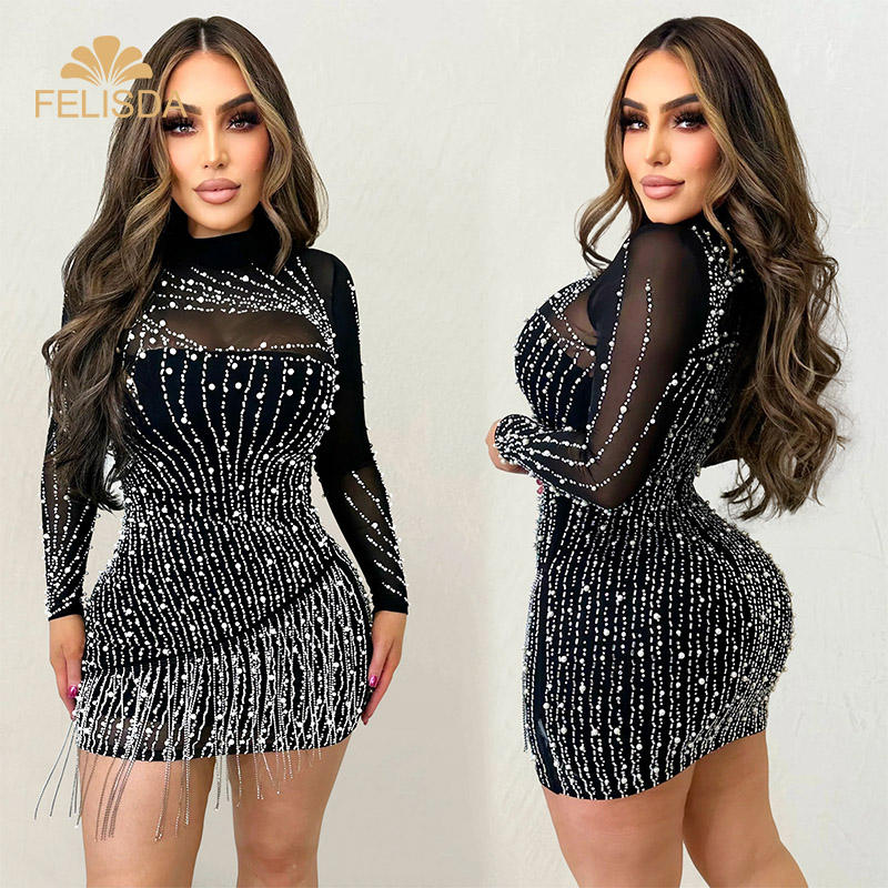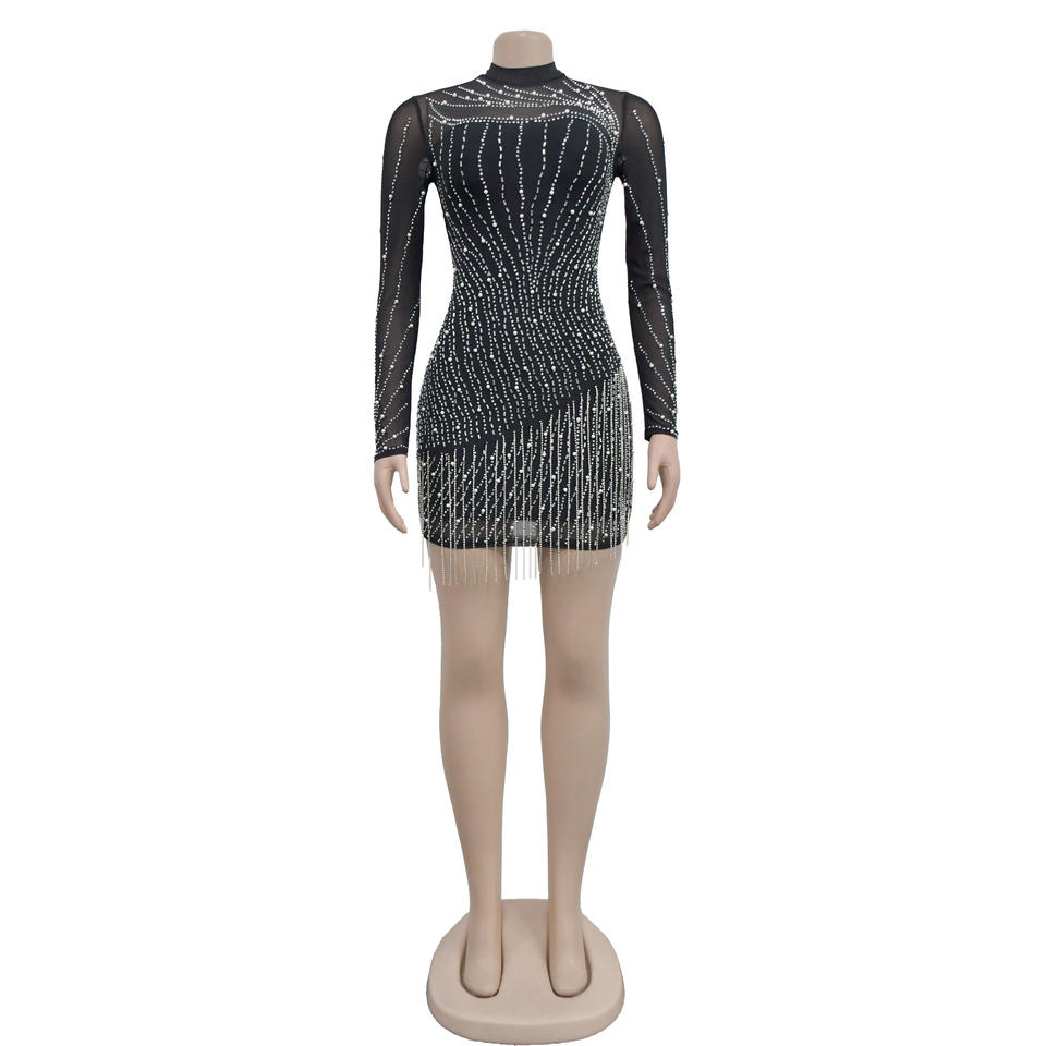 Belle cristal orné de franges Mini robe femmes strass mince court Club robe de soirée tenue d'anniversaire tenue décontractée