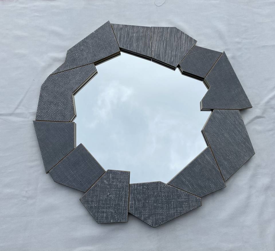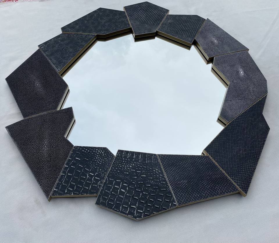 Magnifique miroir rond artisanal de la marque DPC, 100 % fait main, finition brossée, motif abstrait, qualité commerciale, modèle 469, en provenance du Vietnam