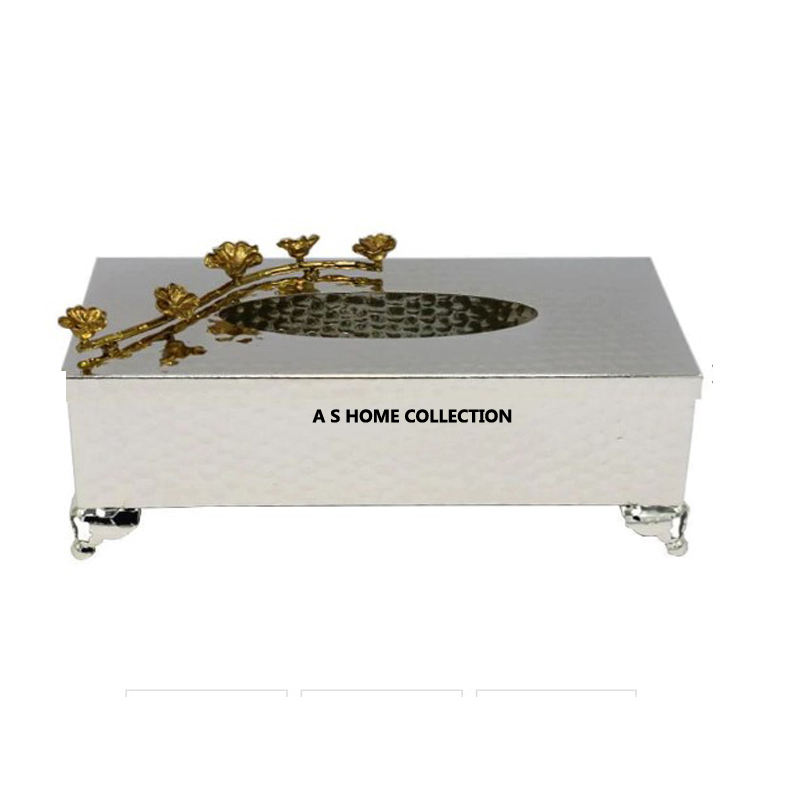 Belle conception décorative élégante de fleurs Boîte à serviettes de table pour restaurant Boîte à mouchoirs en métal de couleur personnalisée de qualité supérieure