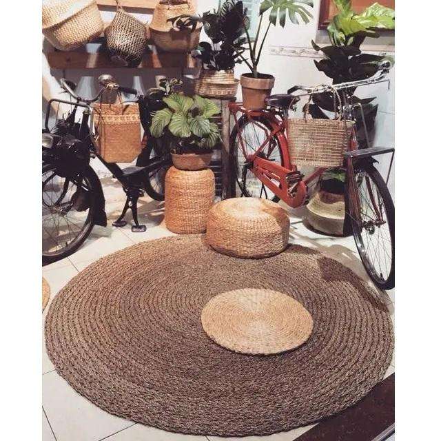 Beau tapis décoratif en rotin couleur naturelle fait à la main rond tissé tapis intérieur écologique rembourré pour le sol de la chambre