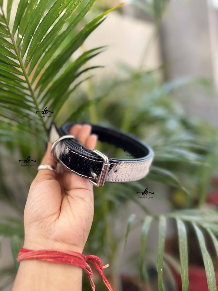 Beau design collier de chien en cuir de fourrure de vachette crâne Western motif colliers pour animaux de compagnie en gros produit en vrac multi-usages