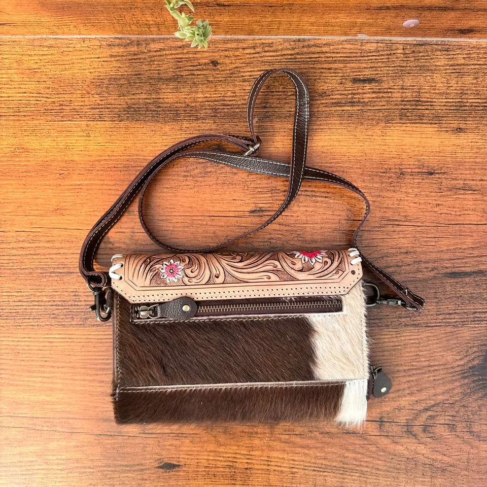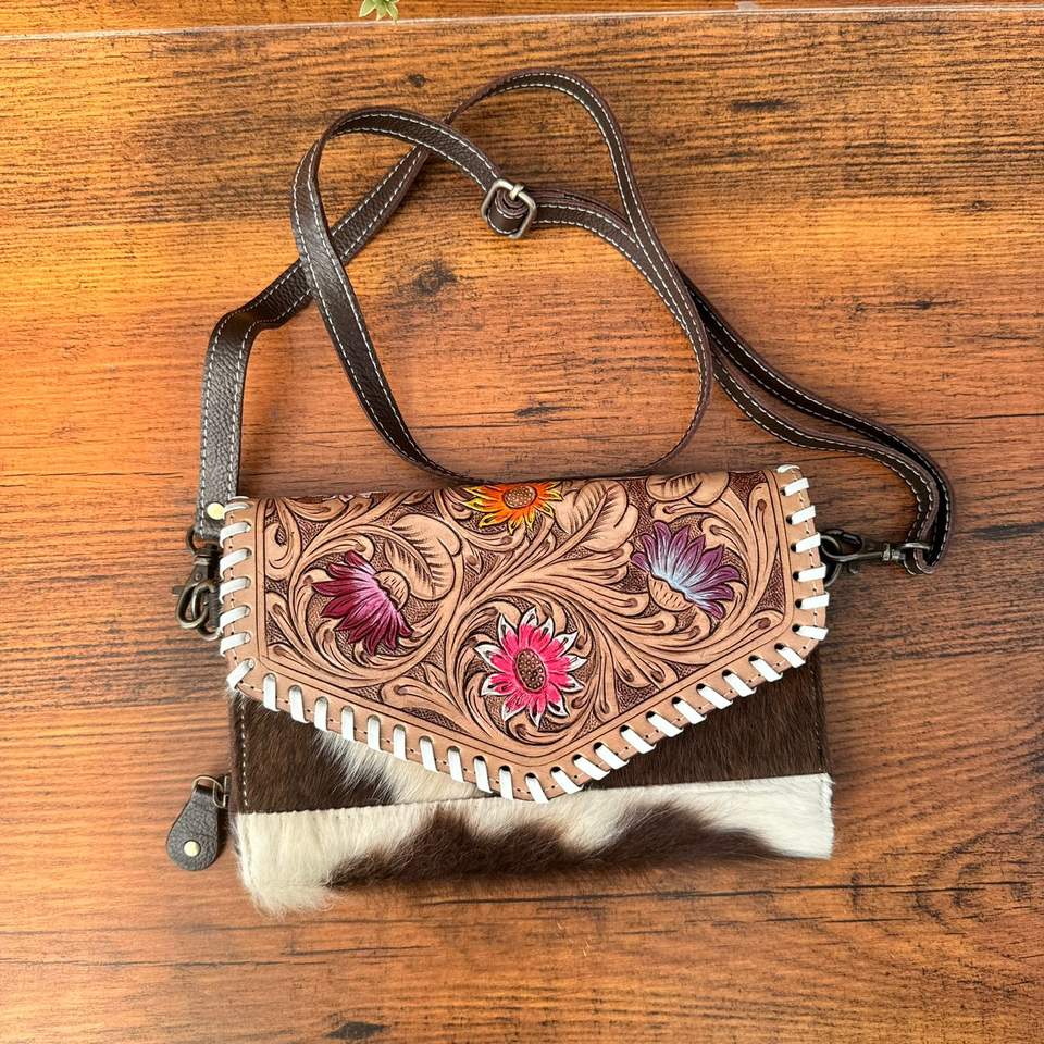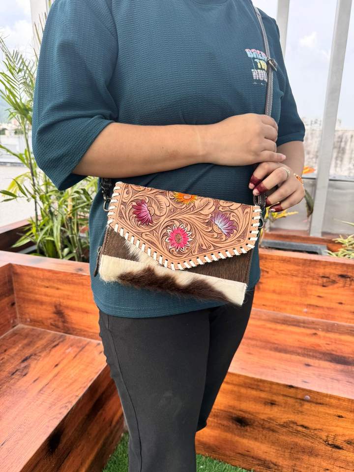 Porte-monnaie Crossbody en cuir sculpté à la main