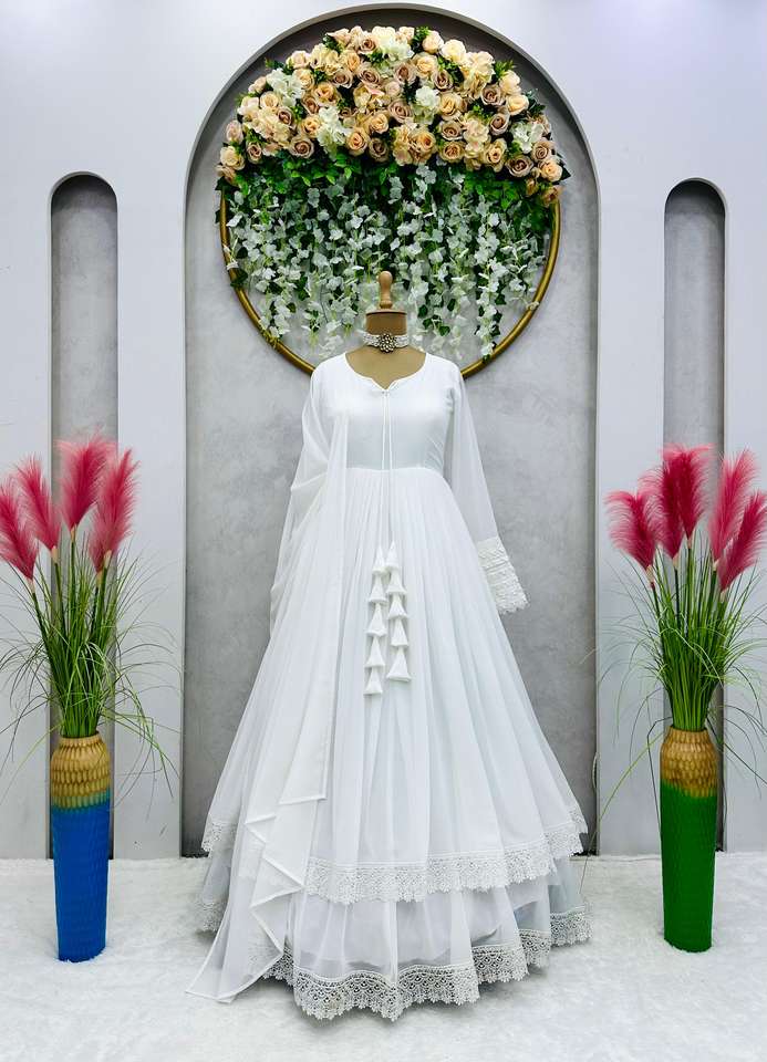 Beau costume d'Anarkali de concepteur-Pent avec le travail de dentelle