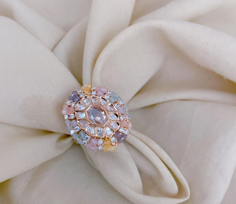 Belle bague réglable de meilleure qualité de finition rose de concepteur pour la fonction et la collection de vêtements de mariage de fête pour les femmes et les filles