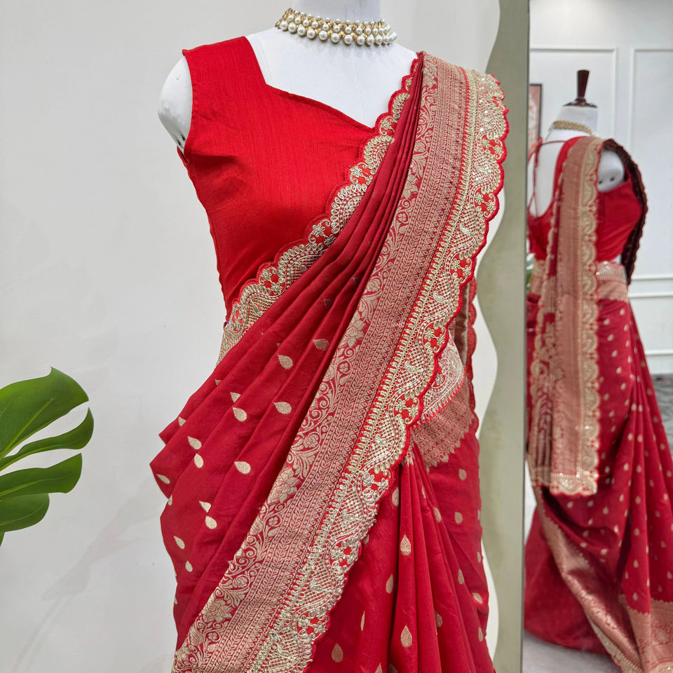 Magnifique sari en soie de créateur avec broderie et dentelle à sequins, infroissable, idéal pour les occasions festives