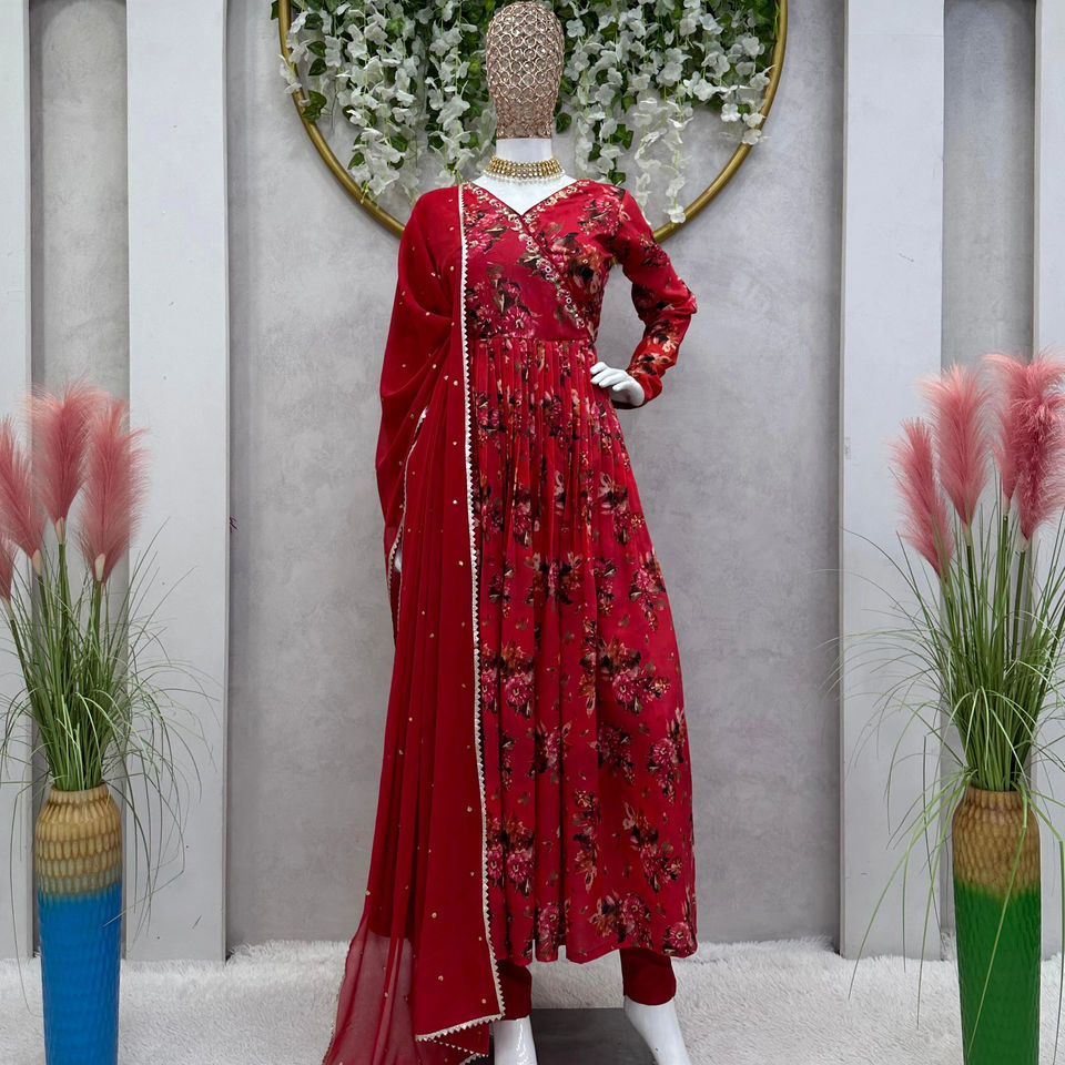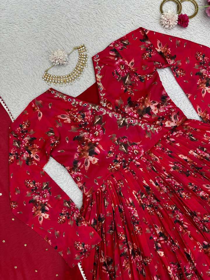 Beau costume de créateur avec intérieur et plazzo-Dupatta avec impression numérique et travail manuel