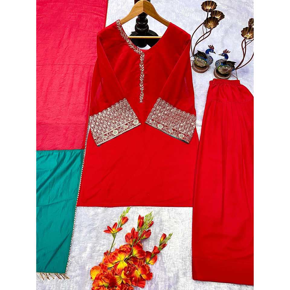 Magnifique ensemble haut-bas et dupatta de créateur pour les fêtes indiennes et pakistanaises