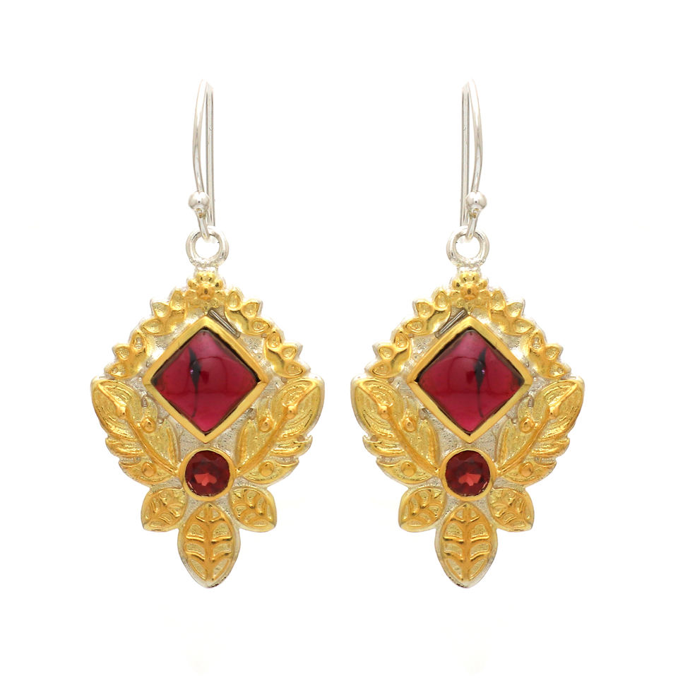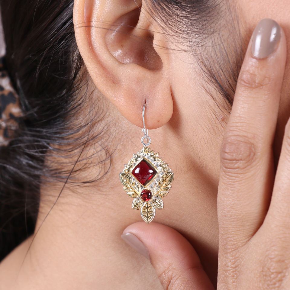 Belles boucles d'oreilles en argent sterling 925 bicolore grenat Boucles d'oreilles uniques à bas prix