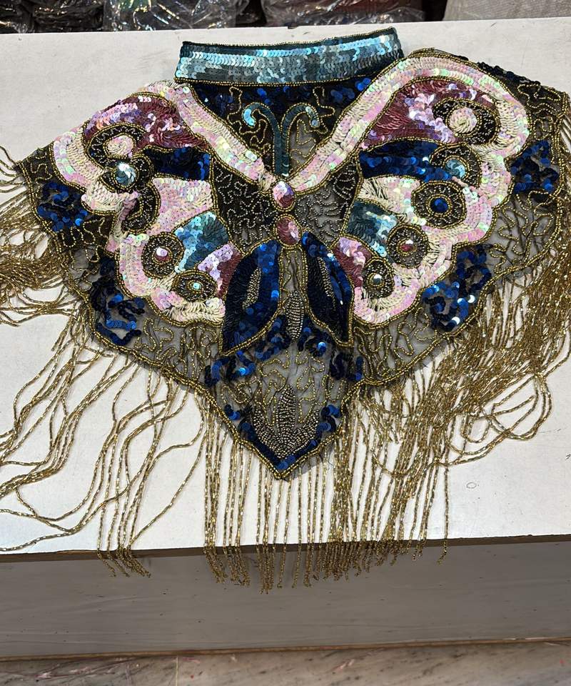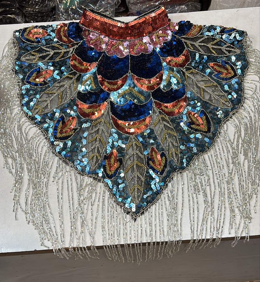 Beautiful Elegant Burlesque Cape with Beaded Strands and Sequins Festive Club Outfit Fastens Neck for Festivals and Parties