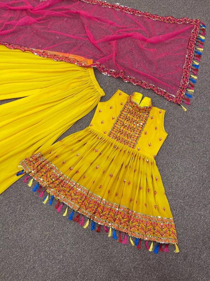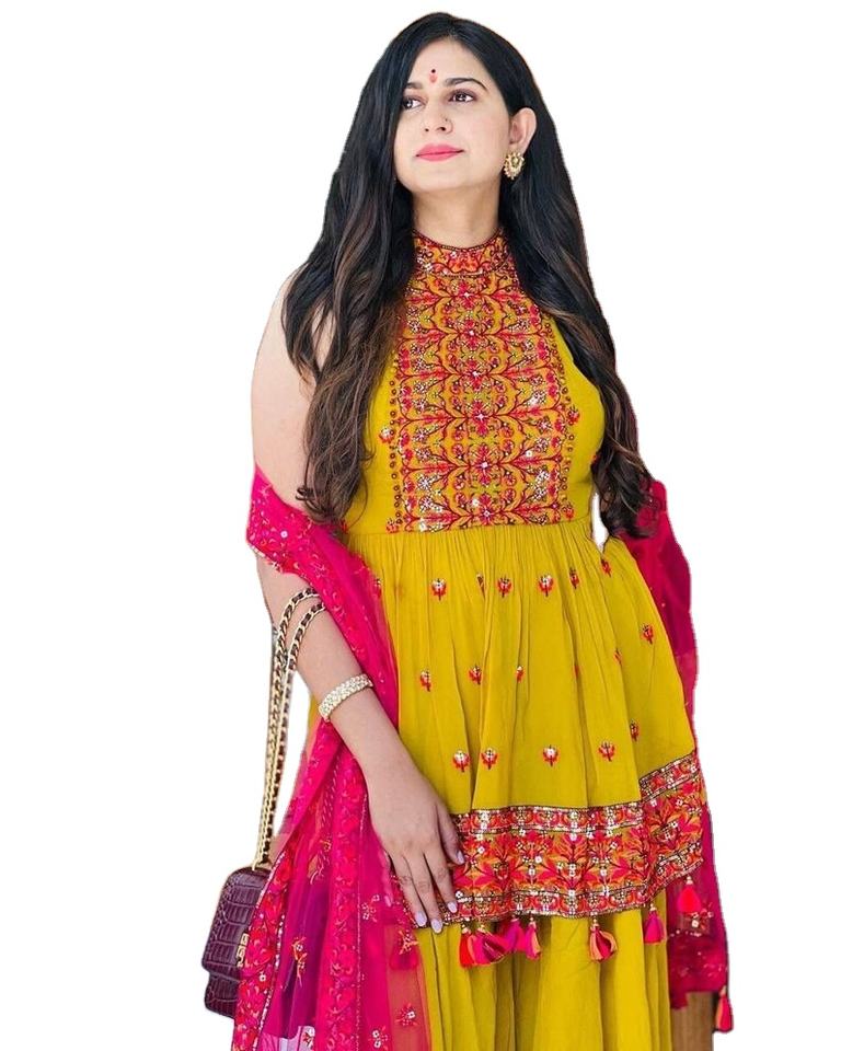 Magnifique short en georgette brodé Anarkali Kurta avec Georgette Sharara et Dupatta, designer pakistanais Festive/ Partywear