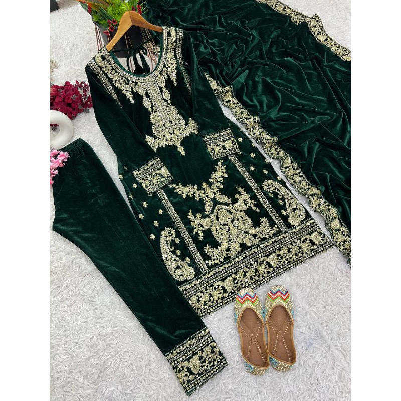 Bel ensemble haut-bas et Dupatta brodé avec séquence pour vêtements indiens et pakistanais