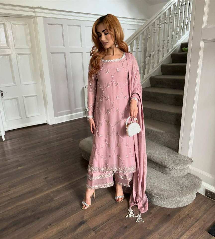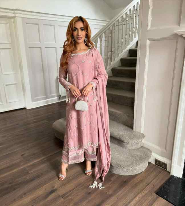 Magnifique Broderie Et Paillettes Travail Kurti-Plazzo Avec Dupatta