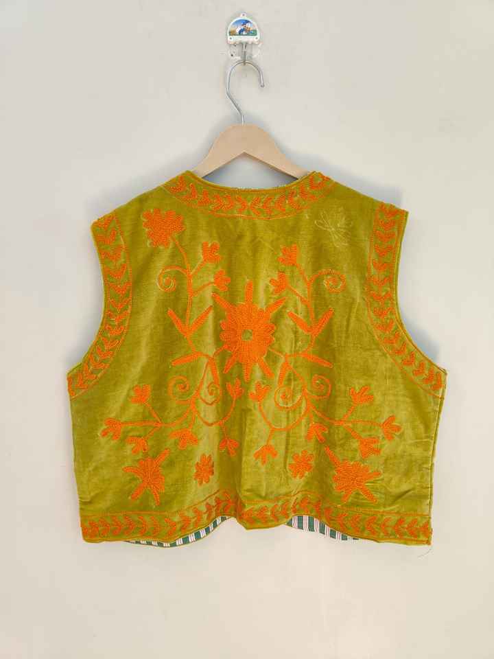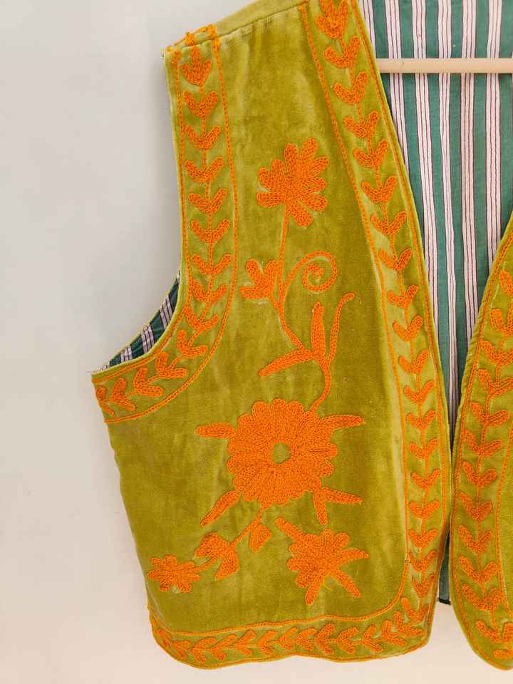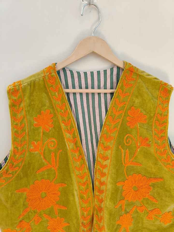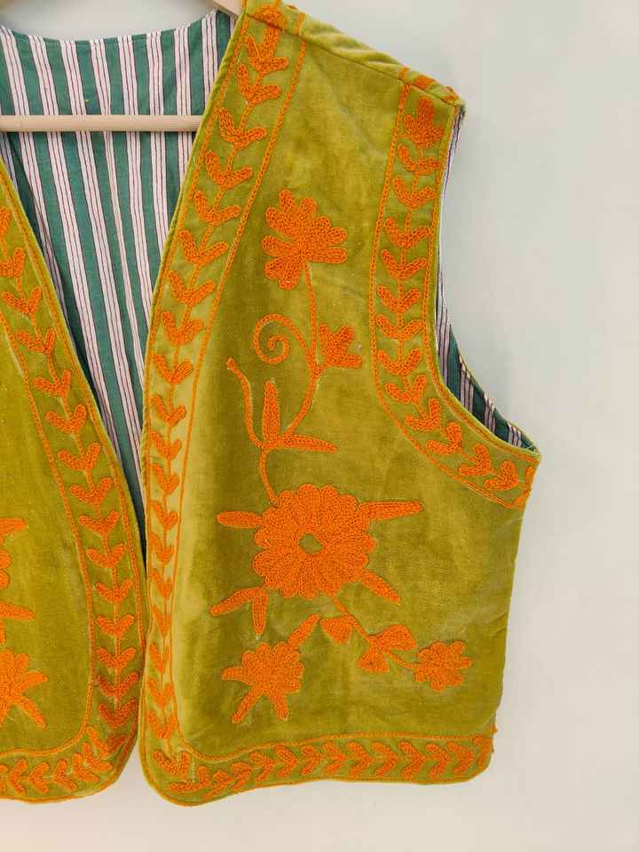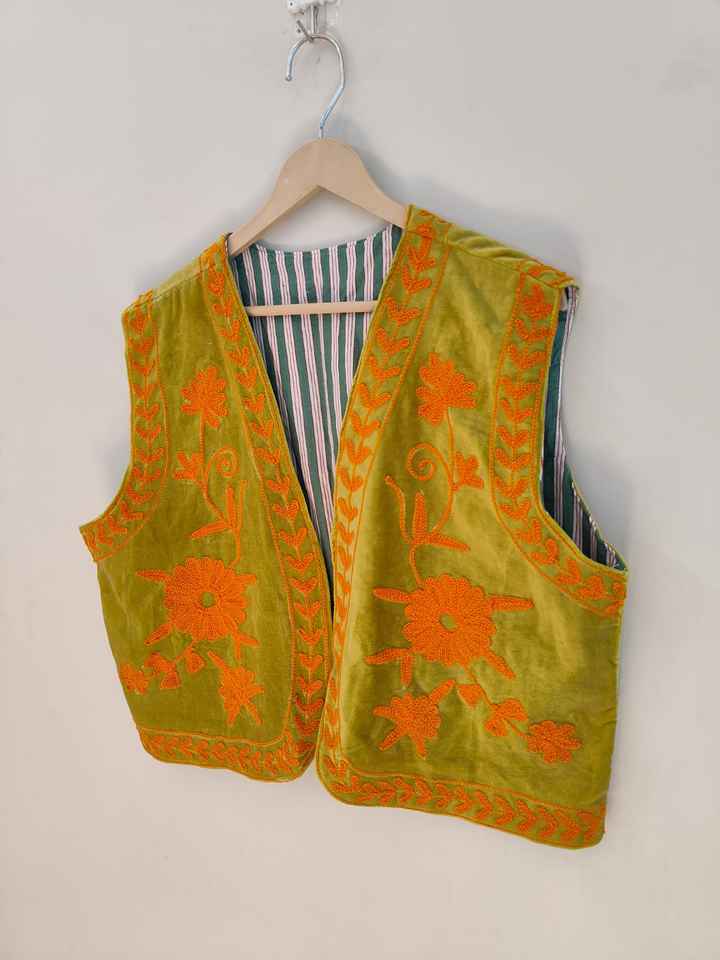 Veste bomber en velours brodée magnifique, faite à la main, style bohème, motif floral, écologique, réversible, pour l'hiver