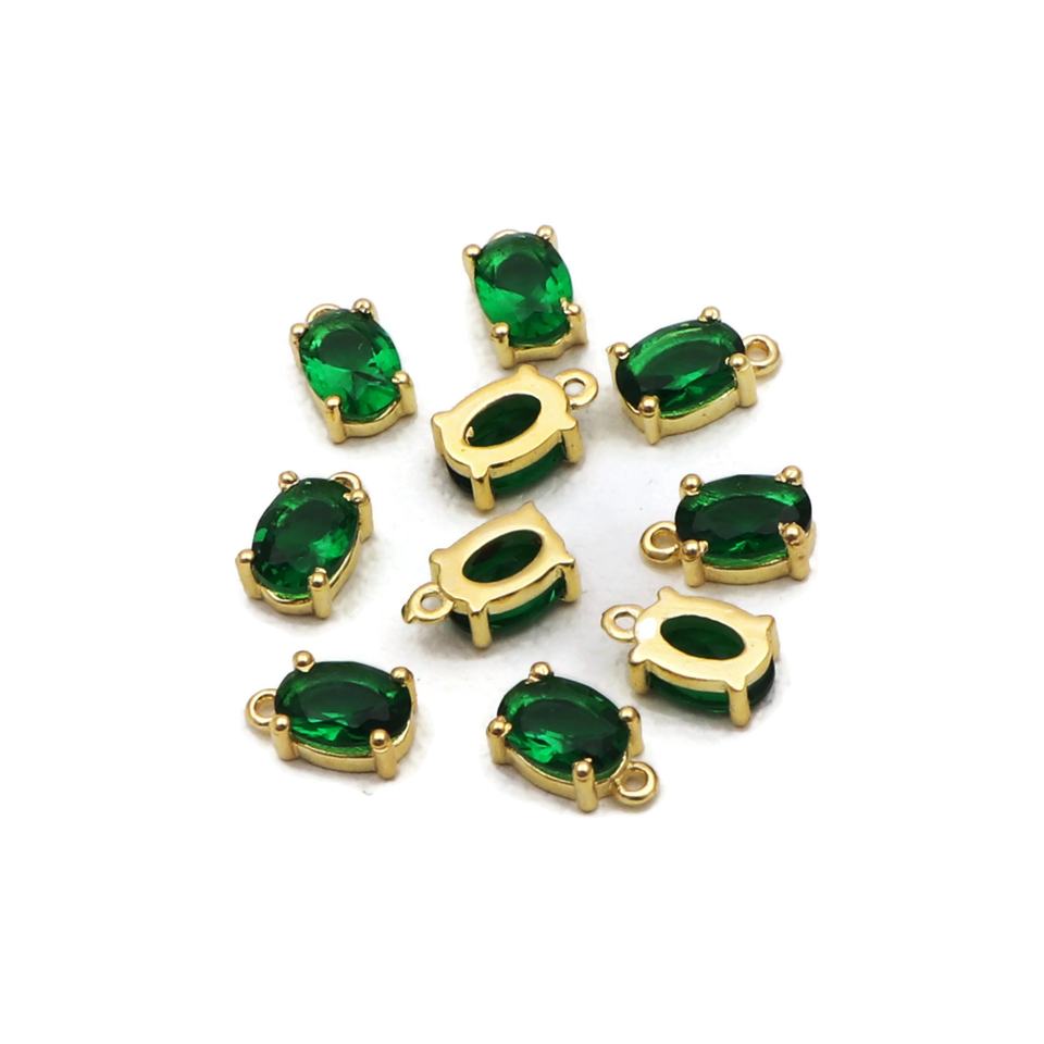 Magnifique pierre précieuse en quartz émeraude taille ovale 5x7mm, plaqué or, sertie à griffes, pour connecteurs de pendentifs et boucles d'oreilles, fourniture de bijoux