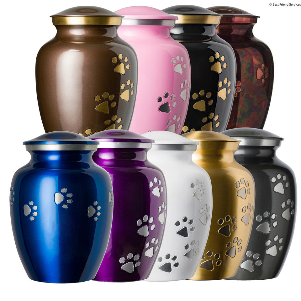 Magnifiques urnes funéraires européennes multicolores avec patte dorée pour animaux de compagnie, écologiques, durables, en métal, pour cendres funéraires