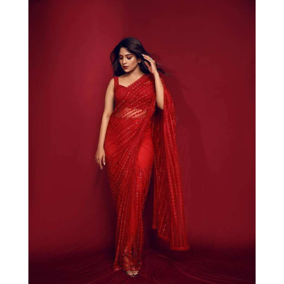 Belle robe de soirée Saree avec séquence et fil de travail