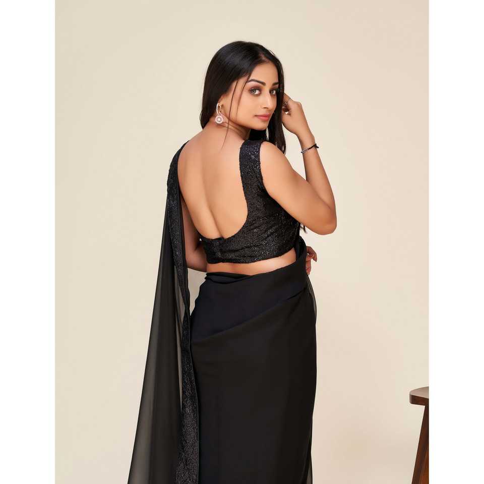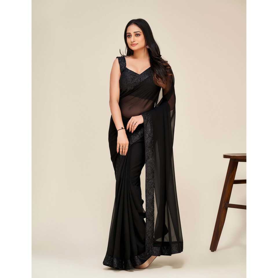 Magnifique robe de soirée, sari avec bordure en sequins, pour les fêtes, rehaussant l'élégance