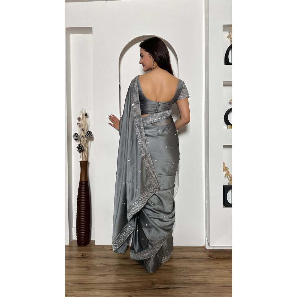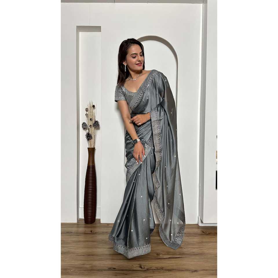 Belle robe de soirée Stone Work Saree pour les fêtes