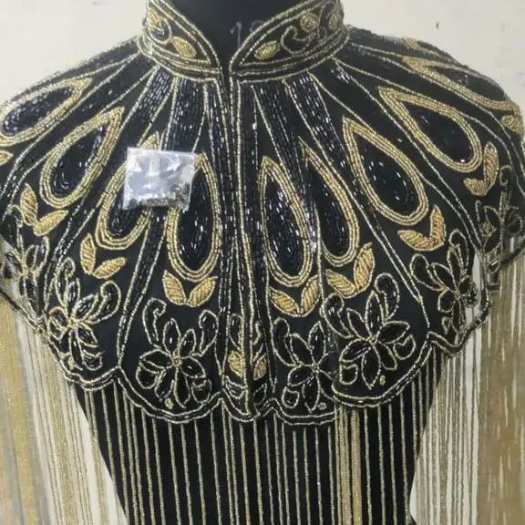 Belle Cape Burlesque Festive Broderie Paillettes Brins Perlés Silhouette Droite Longueur Au Sol Col En V Soutien-Gorge Intégré Naturel