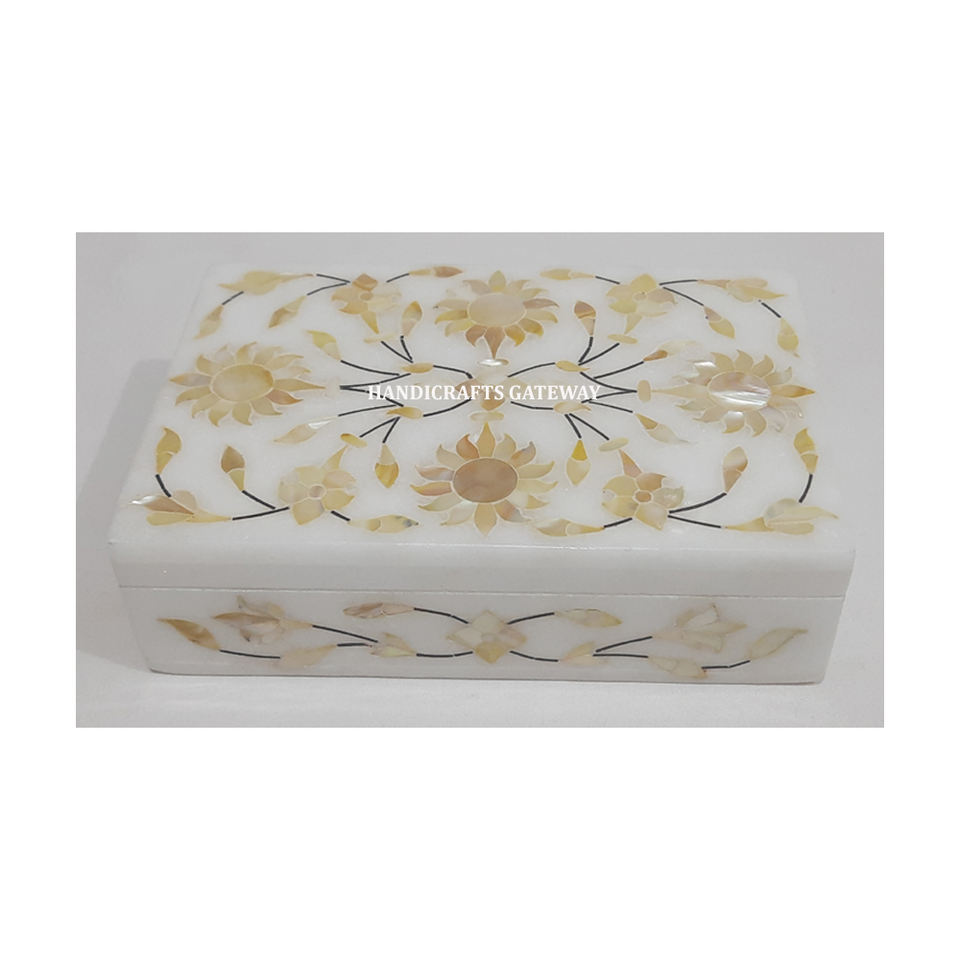 Belle fleur Design marbre incrustation doré nacre bijoux boîte d'emballage forme Rectangle pour cadeau d'entreprise but