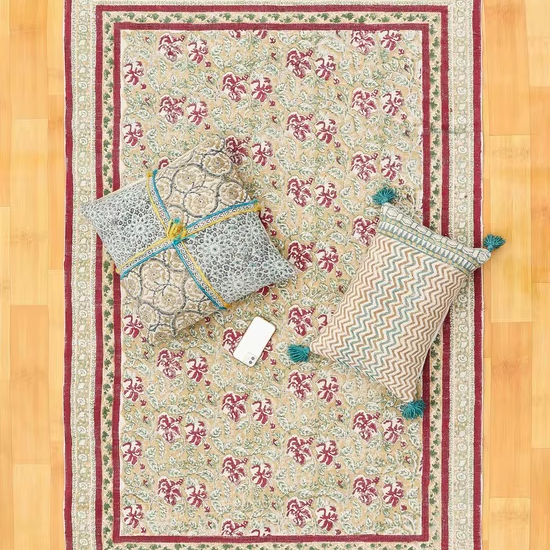 Beaux tapis de créateur à motifs de fleurs et de feuilles Conception de travail de broderie traditionnelle et matériel 100% coton et pour les tapis de maison