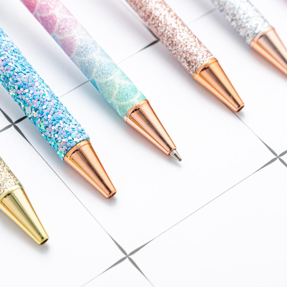Beautiful Glitter Retractable Metal Ballpoint Pen 1.0mm Writing Width Customized Logo Four-leaf Clover Pendant Promotional Use
