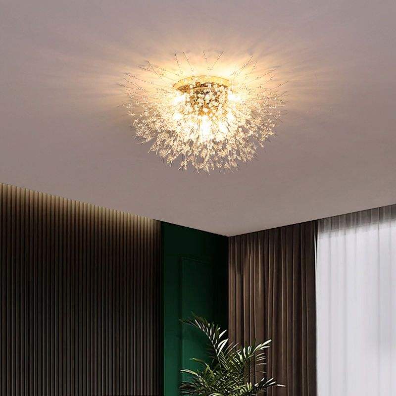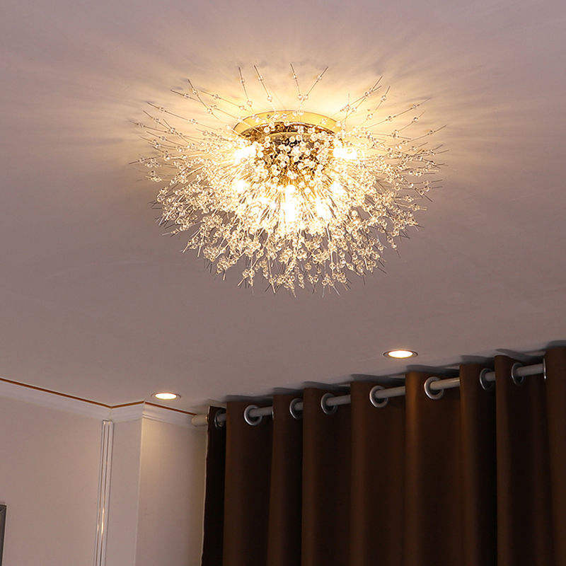Belle entrée dorée style fleur Feu d'artifice Romantique chrome doré Pissenlit abat-jour allée salon plafonnier