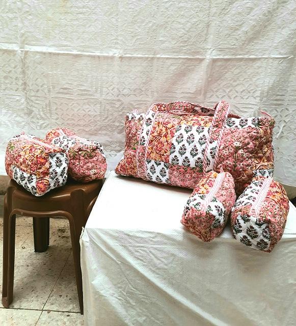 Beaux sacs en coton matelassé à imprimé bloc à main pour femmes, fourre-tout cosmétique, sacs à main en tissu de travail pour Patch Floral de week-end